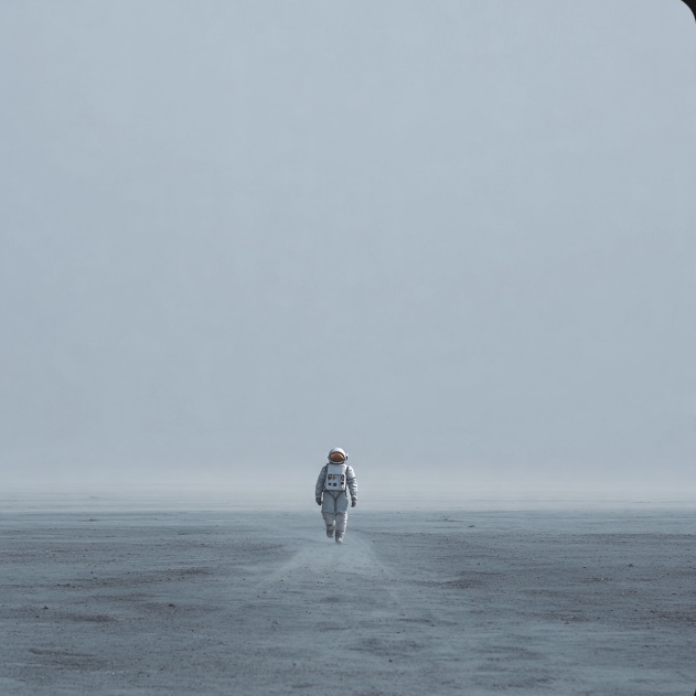He walked, leaving crisp boot prints in the fine powder that blanketed everything. It softened the edges of anything that may lay buried. There was no wind, yet he trudged between dunes.